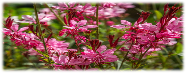 In maximum conditions, they make a length of about 1-1.5 meters, a diameter of 0.5-1 meter. Its branches develop steeply upwards in numerous shoots from under the ground. It has lanceolate leaves. They grow fast. It has pink flowers with 4 petals 2.5-3 cm wide. It blooms in the period from Spring to Autumn. Resistant to summer heat and winter cold. It is a very hardy and elegant plant that can be used as a border plant. Gaura flower is not picky in terms of soil demand.