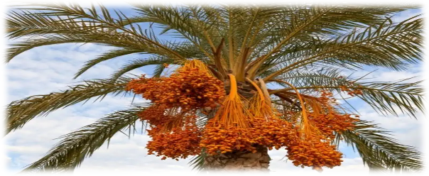 Date palm tree; It grows in hot, tropical, temperate and desert climates. It is a species of palm in the palm family. It is similar to the palm tree. It is estimated to have a history of eight thousand years. He loves water and sun very much, if one is missing, it will not bear fruit. There are male and female date palm trees and they have different characteristics. In the middle of an average of 5 female date palm trees, there is a male date palm tree. The roots of the date palm tree are in the form of piles and fringes. It has an upright structure and can grow up to 10 meters in length. It has been observed that some species of dates rarely rise above 30 meters. Its cylindrical and upright trunk are also usually around 30-40 centimeters, there are also date palm trees that can reach 1 meter in diameter.