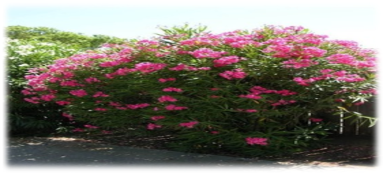 Олеандр, широко известный как нериум, представляет собой кустарник или небольшое дерево, выращиваемое как декоративное и ландшафтное растение в умеренных и субтропических регионах по всему миру. Хотя его часто связывают со Средиземноморским бассейном, точный регион происхождения не определен. Устойчив как к засухе, так и к переувлажнению. Пятилопастные цветки, белые, розовые или красные, растут гроздьями в течение всего года и достигают пика летом.